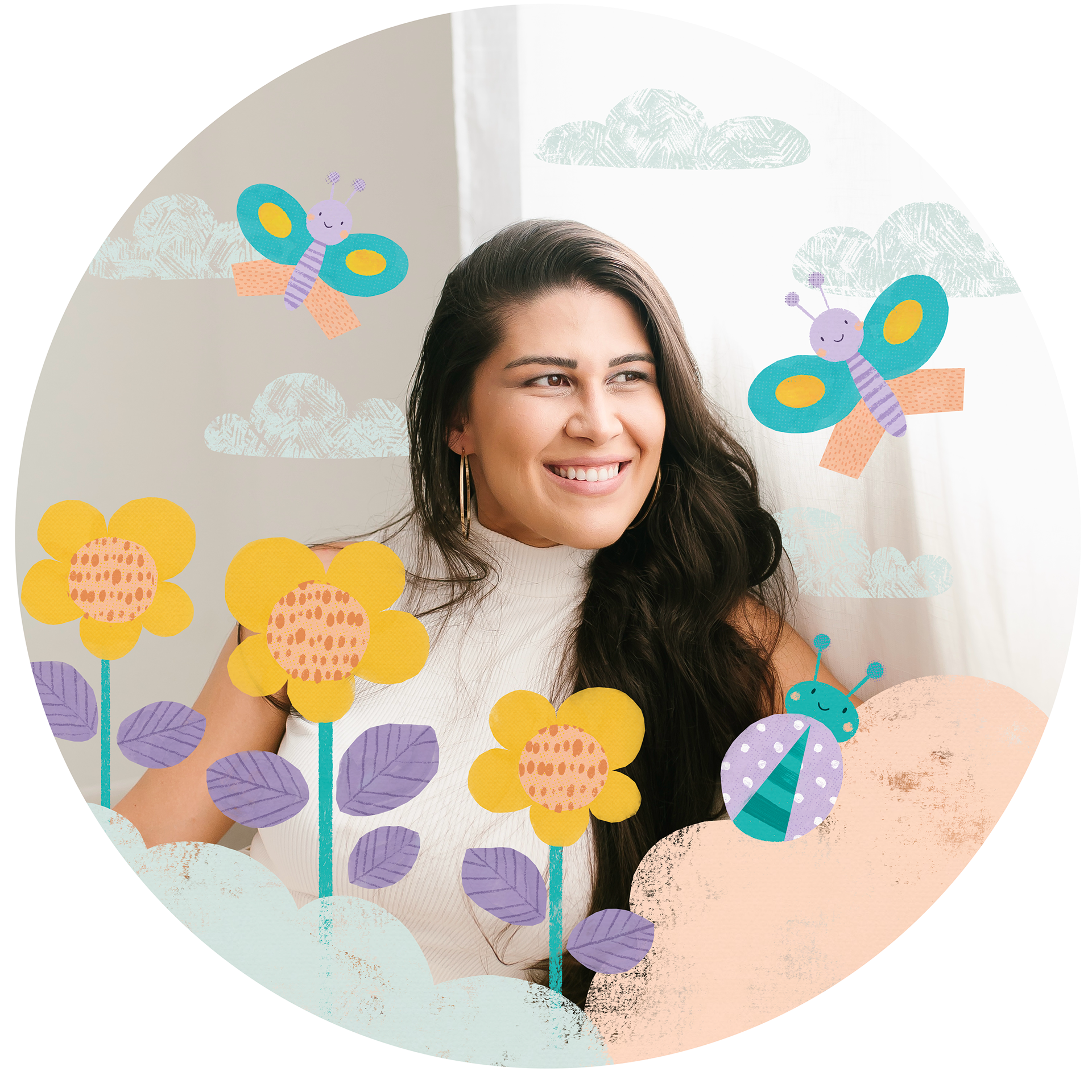 Her style is fun with a mix of flat, textures, patterns and colors. She works digitally, but loves adding traditional textures as gouache, colored pencils, chalk and pastels. Ans she also loves to use limited color palette.